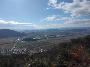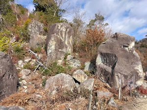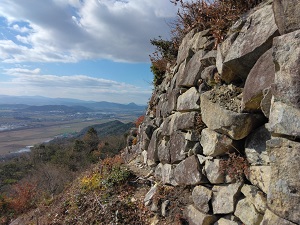 大石垣の上部には石切場(採石場)があり、「女良岩(女郎岩)」と呼ばれる巨石があります。景色を楽しむことができます。